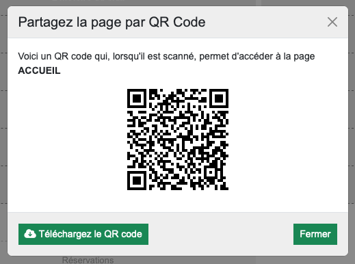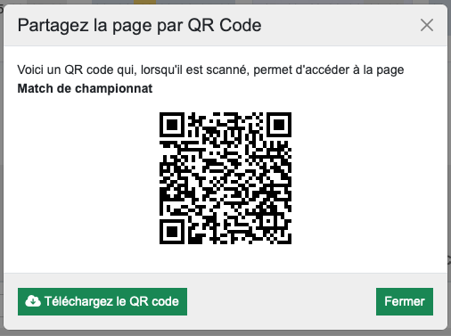 Vous allez ensuite pouvoir visualiser et télécharger un QR Code pointant vers la page en question :