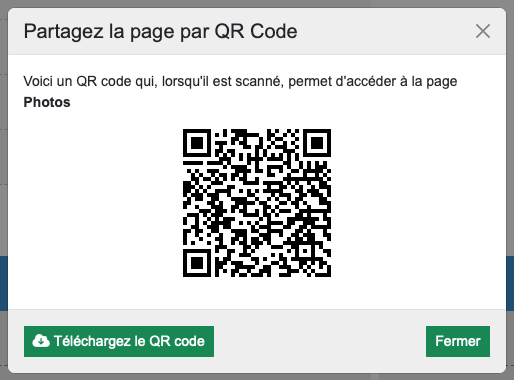 Vous allez ensuite pouvoir visualiser et télécharger un QR Code pointant vers votre élément :