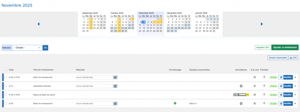 Pour avoir un QR Code menant vers une news, un événement ou un album, il faut vous rendre, côté administration, sur votre liste de news / événements / albums (depuis la partie « Contenu ») :