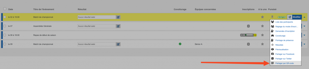 Ensuite, dans le menu qui s’affiche, sélectionnez l’option « Partager par QR Code » :